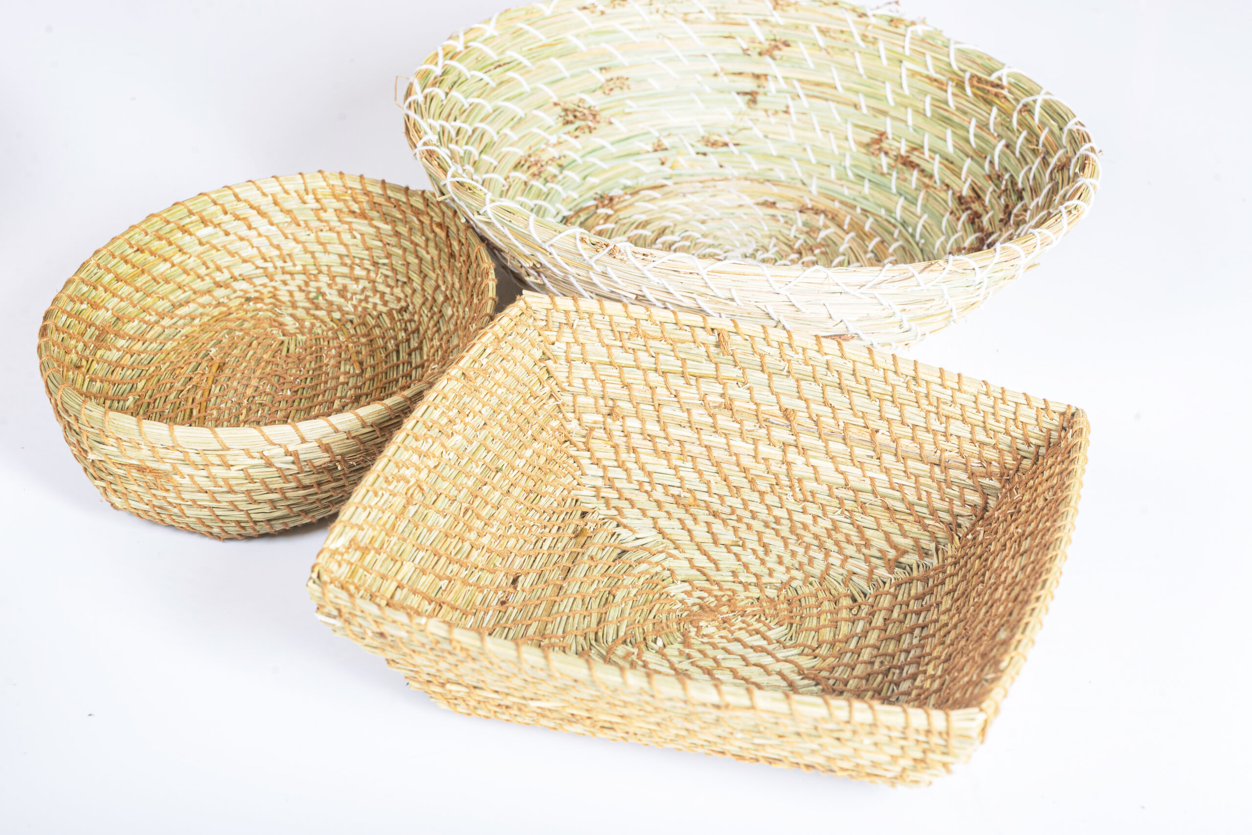 Stabiler und dennoch dünnwandiger Korb (quadratisch und oval), geflochten aus Flatterbinse in zwei Größen und Formen: